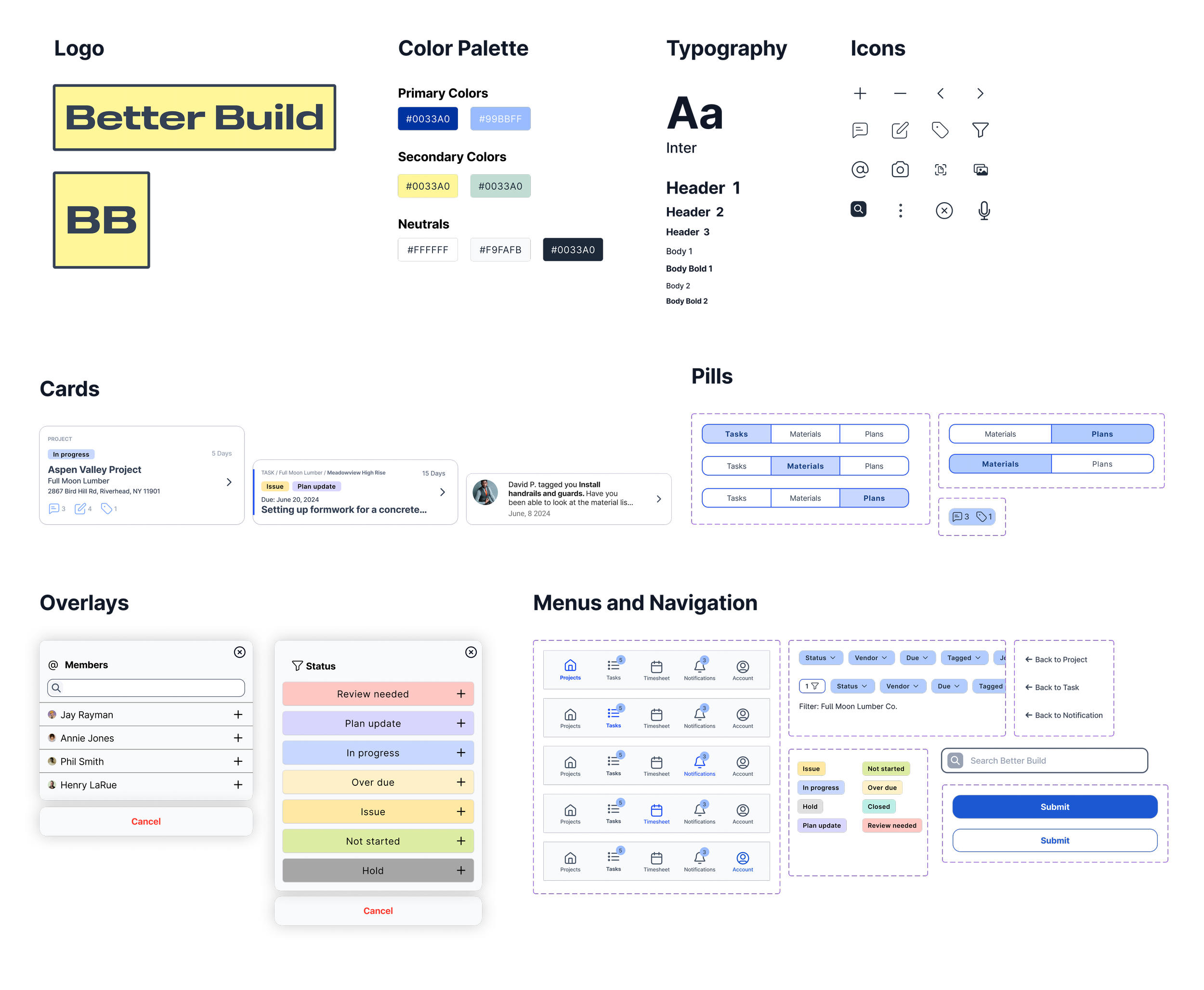 I selected a light yellow for the logo, with vintage tones to create an impression of heritage. Additionally, there is a mint green that can be used to echo a sense of vintage style when necessary. For one of the primary colors, I chose a deep yet vibrant blue, symbolizing trust, strength, and energy. This shade of blue is calm and user-friendly, complementing another primary color that brings everything together. The Better Build’s UI library is designed to be a brand you can trust.